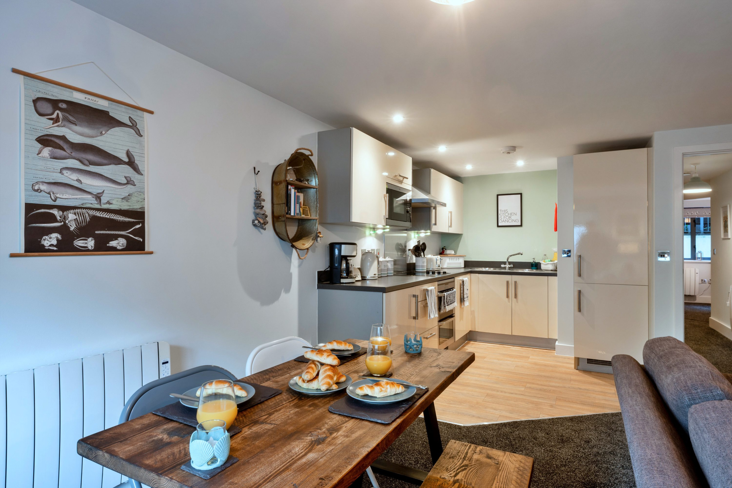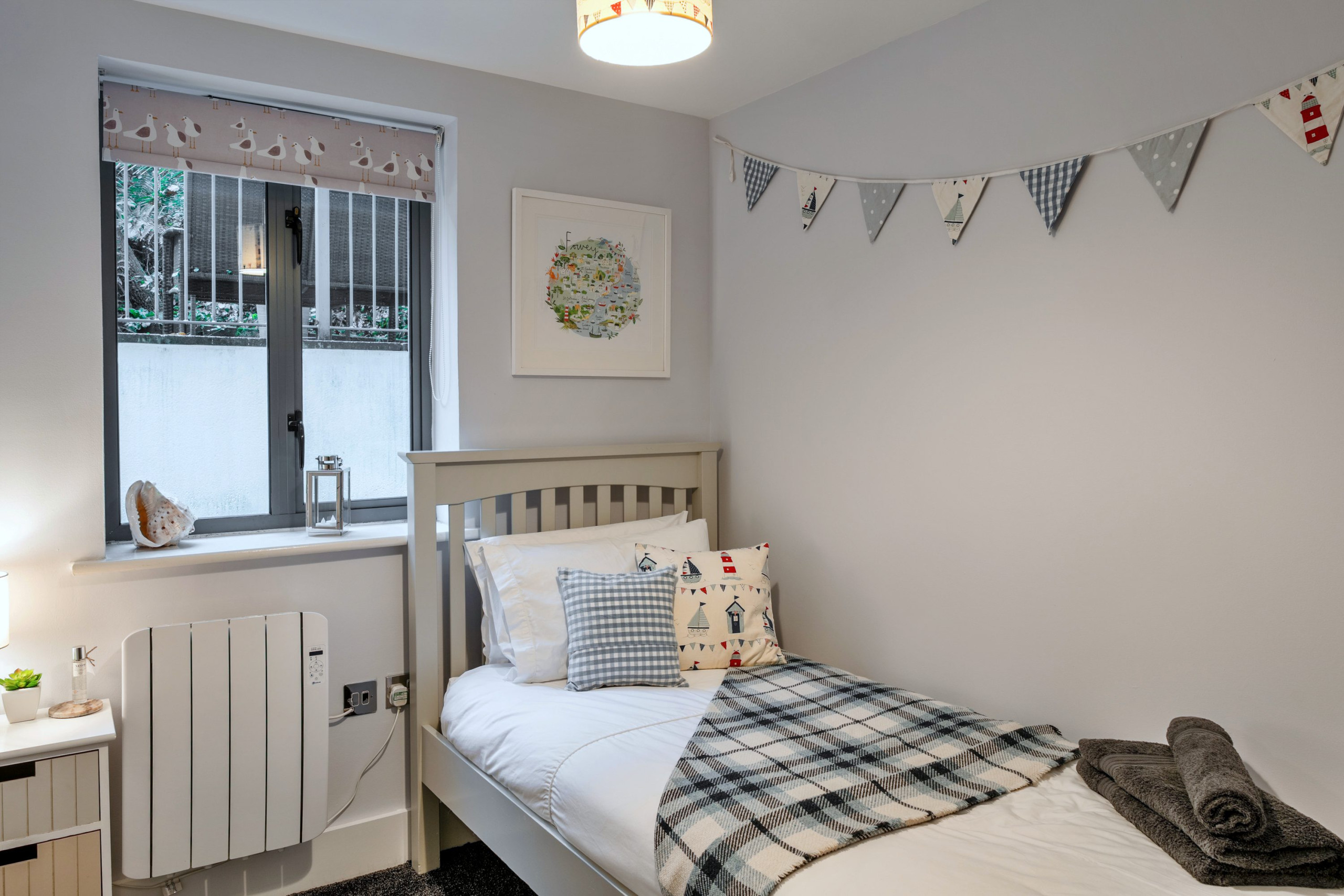 Outside you’ve got access to an enclosed shared terrace, ideal spot for a sunny G&T. From the front door it’s a short walk to Fowey’s harbour, shops, cafés and excellent seafood restaurants. Fowey is a real treat for food lovers, with everything from crab sandwiches eaten on the quay to memorable dinners in award-winning restaurants overlooking the water. Hop on a boat from the quay to see the town from the water or stroll 150 metres to the ferry and nip across to Bodinnick for the Hall Walk and its wow-factor views. Whitehouse Beach is only a mile from the apartment or try Readymoney Cove one of Fowey’s most popular little beaches, great for swimming and perfect for a quick dip or a lazy afternoon in the sun.