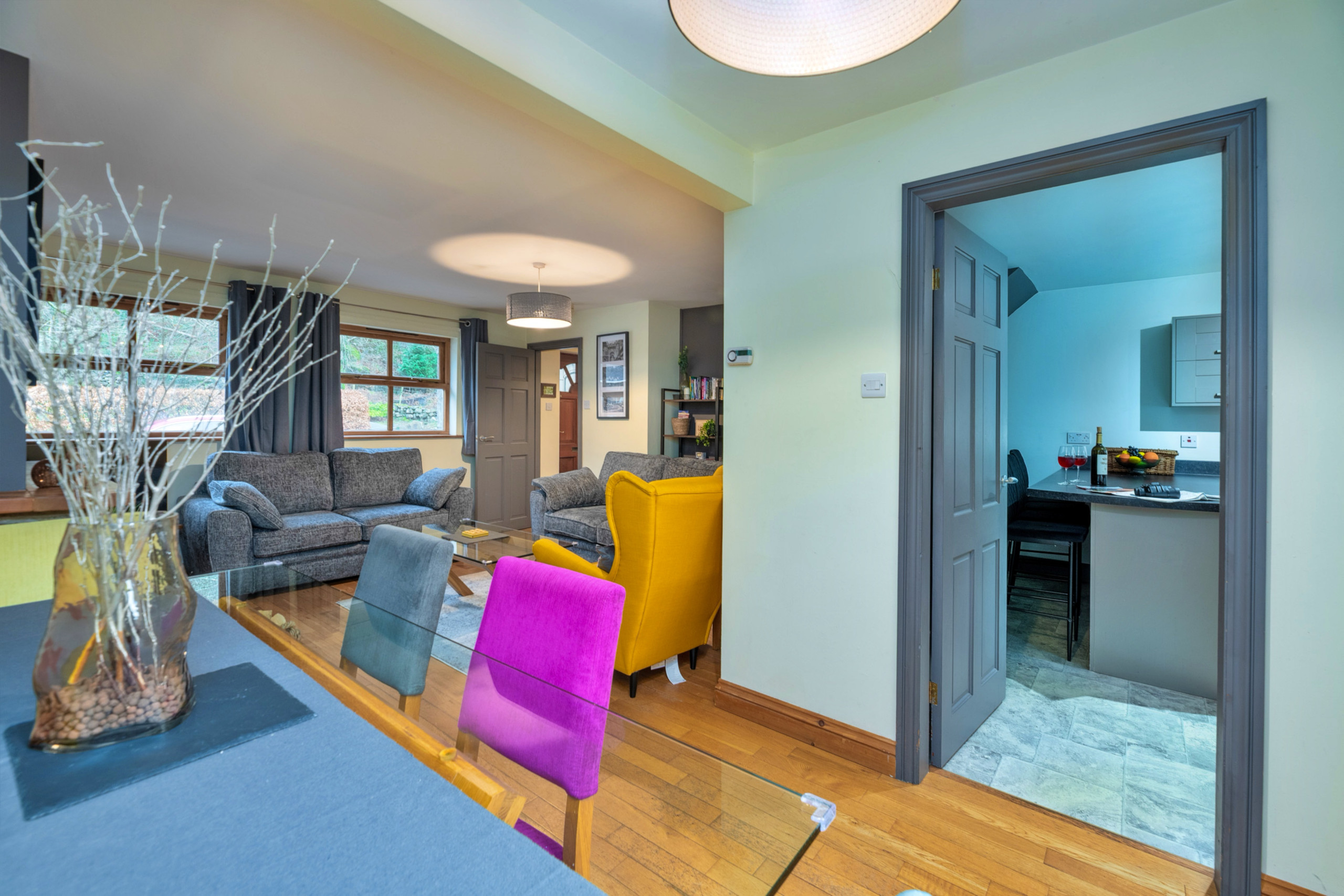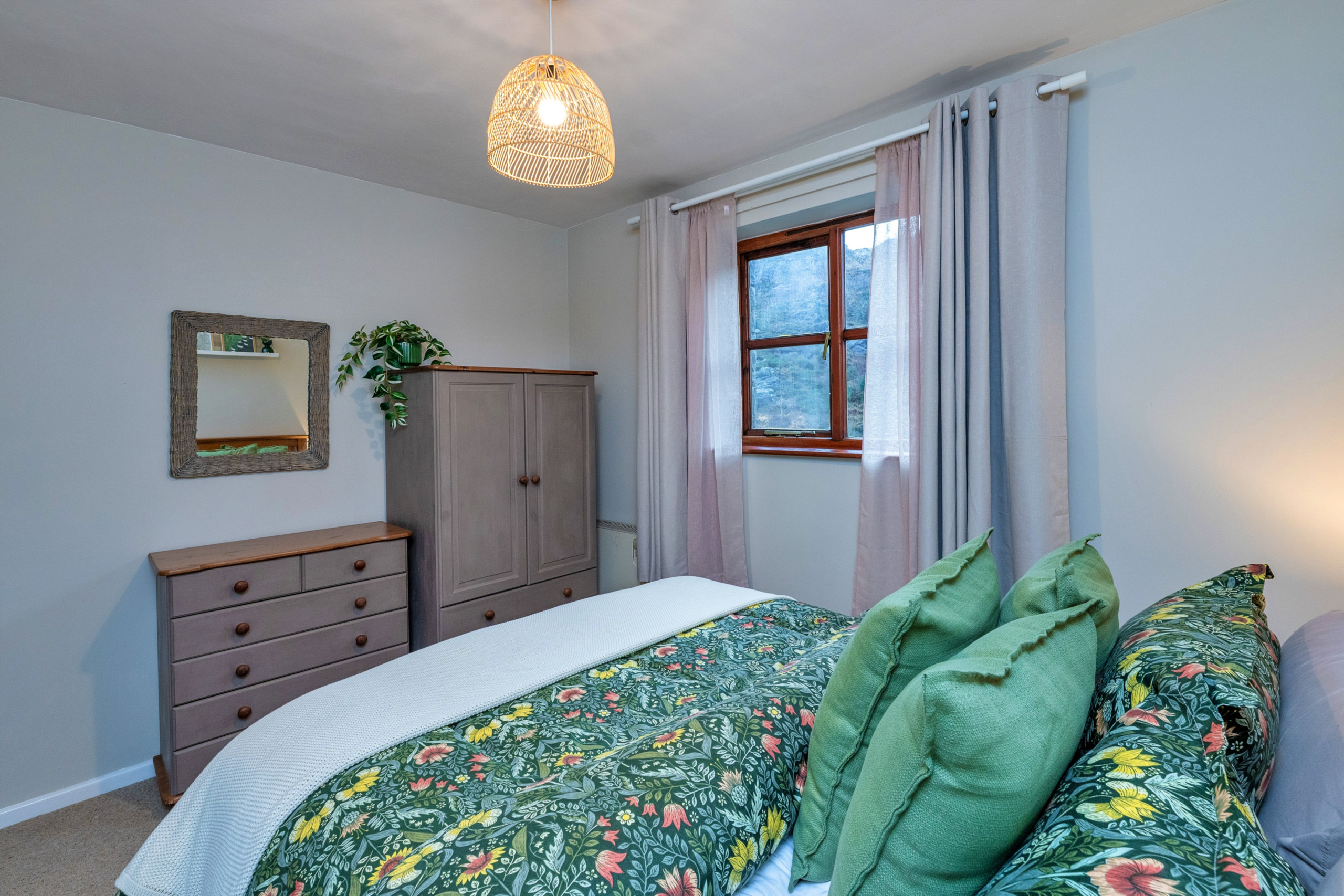 Inside, the welcoming sitting room features an exposed stone fireplace with a multi-fuel stove, creating a warm and inviting space to unwind after a day spent exploring the surrounding mountains and walking trails. The kitchen is well equipped for preparing home-cooked meals to share together long into the evening. Upstairs, the cottage offers three attractively furnished bedrooms. The master bedroom benefits from a modern en-suite shower room, while the remaining two bedrooms enjoy lovely views over the river. A family bathroom completes the accommodation.