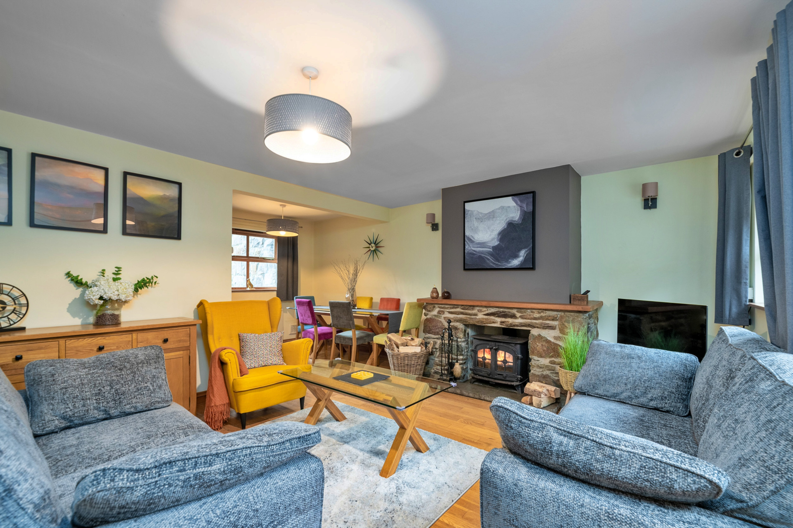 Adwyr Nant is a charming mid-terrace cottage full of character and style, ideally located just a short stroll from the centre of the much-loved village of Beddgelert, right in the heart of the Snowdonia National Park. Set alongside the tranquil Glaslyn River, the cottage enjoys beautiful river and hillside views and offers comfortable, well-presented accommodation perfect for couples, friends, and families looking to relax and reconnect.