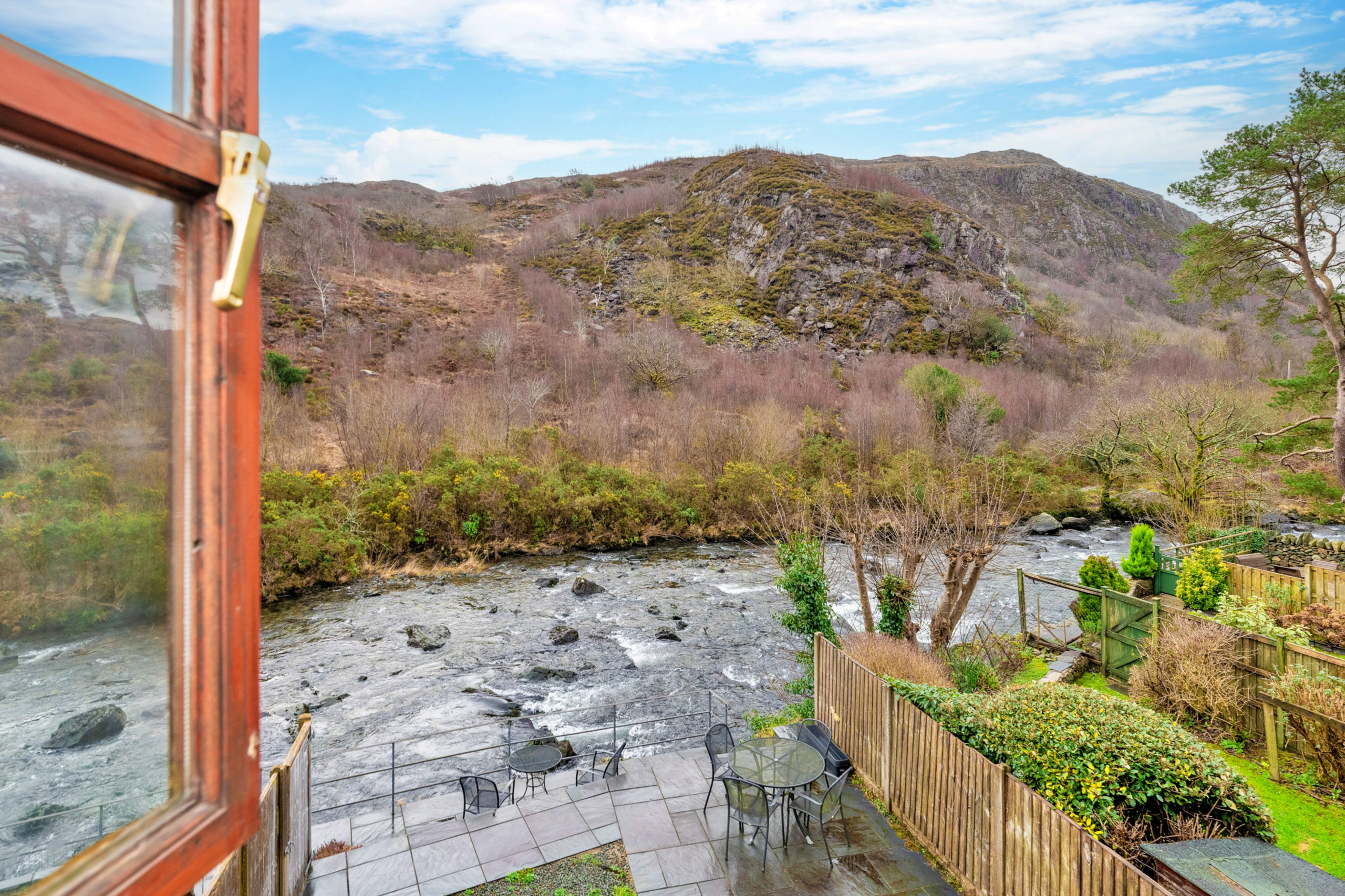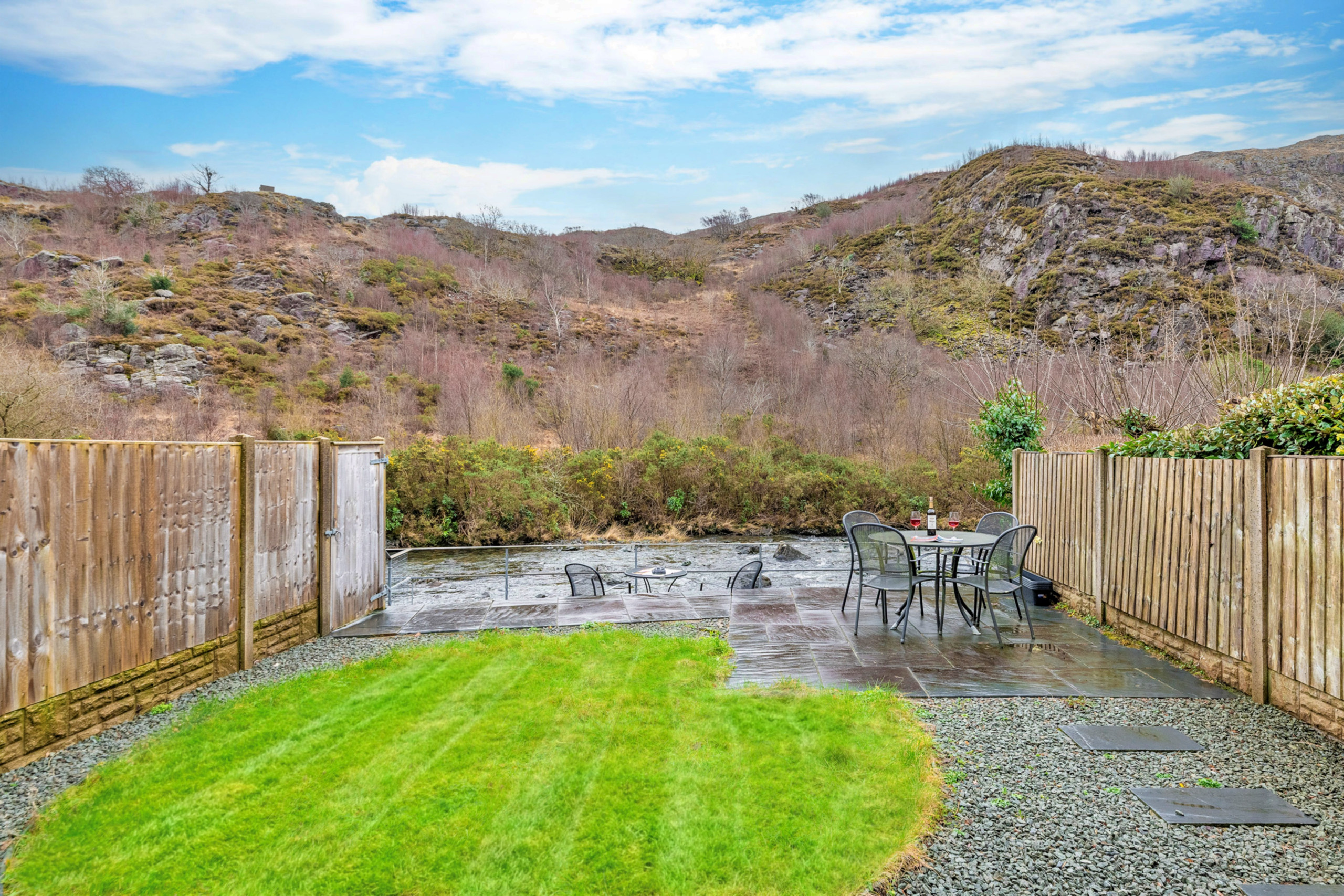 Outside, guests can make the most of the rear patio and lawned garden, furnished with a table and chairs — a wonderful place to relax on warm summer evenings while listening to the gentle flow of the Glaslyn River. Please make sure children are monitored at all times due to the river at the back of the property.
