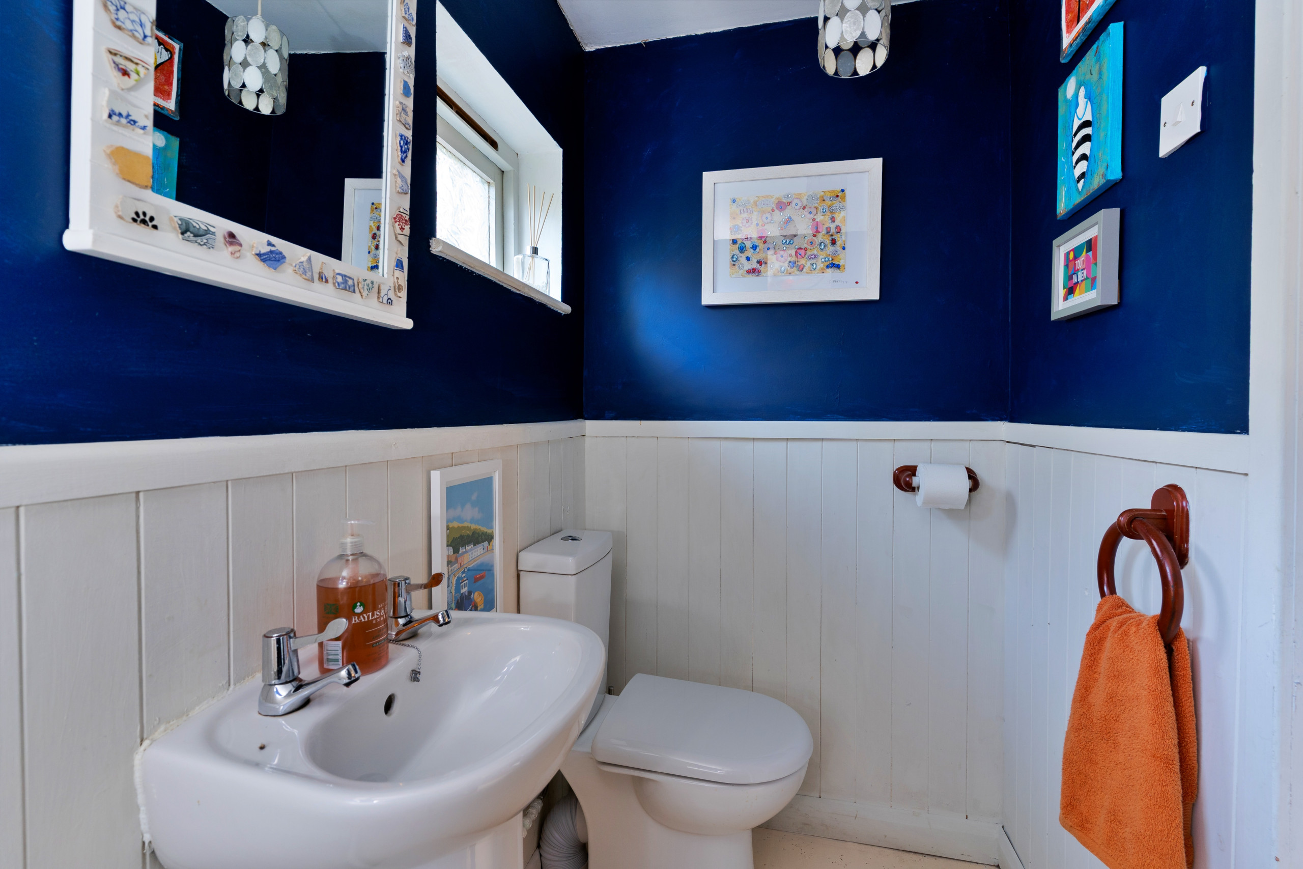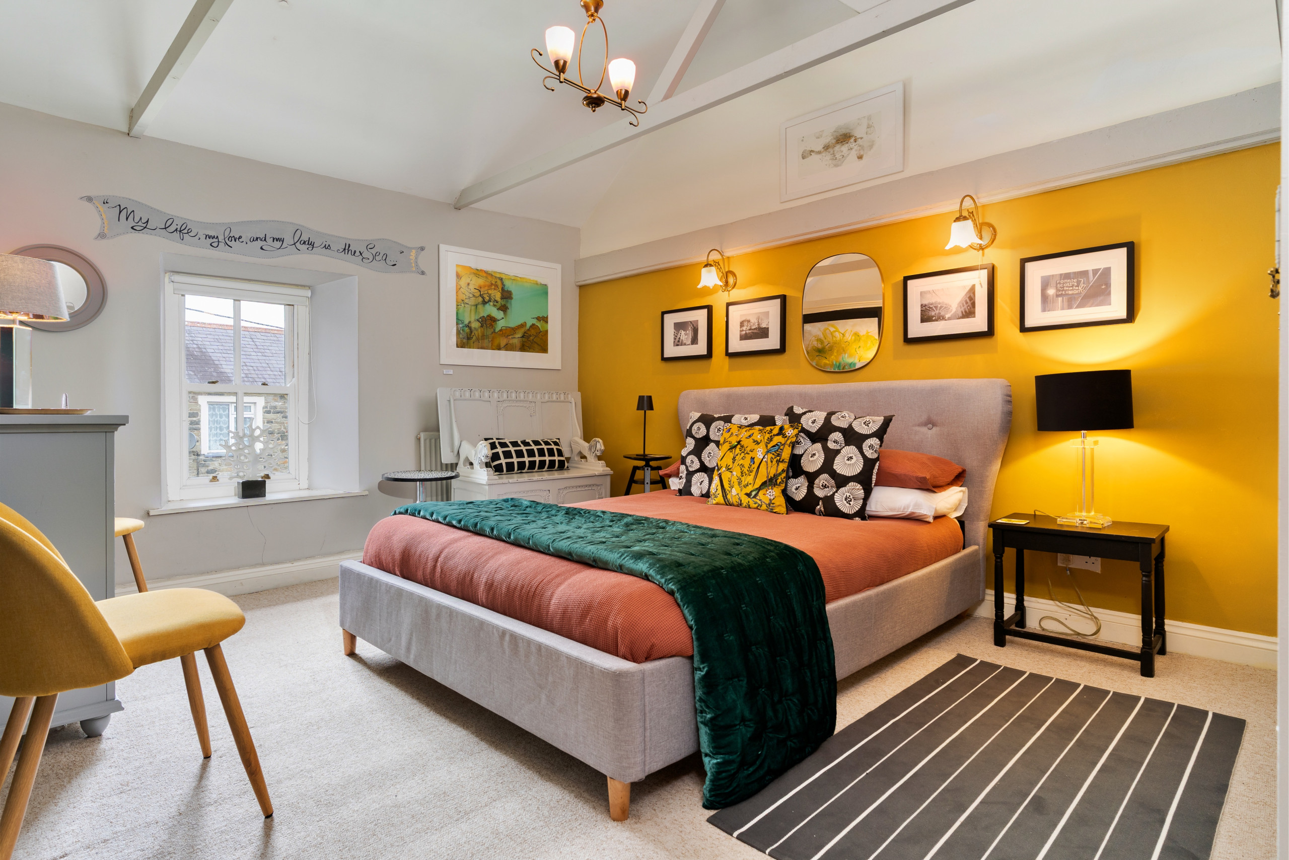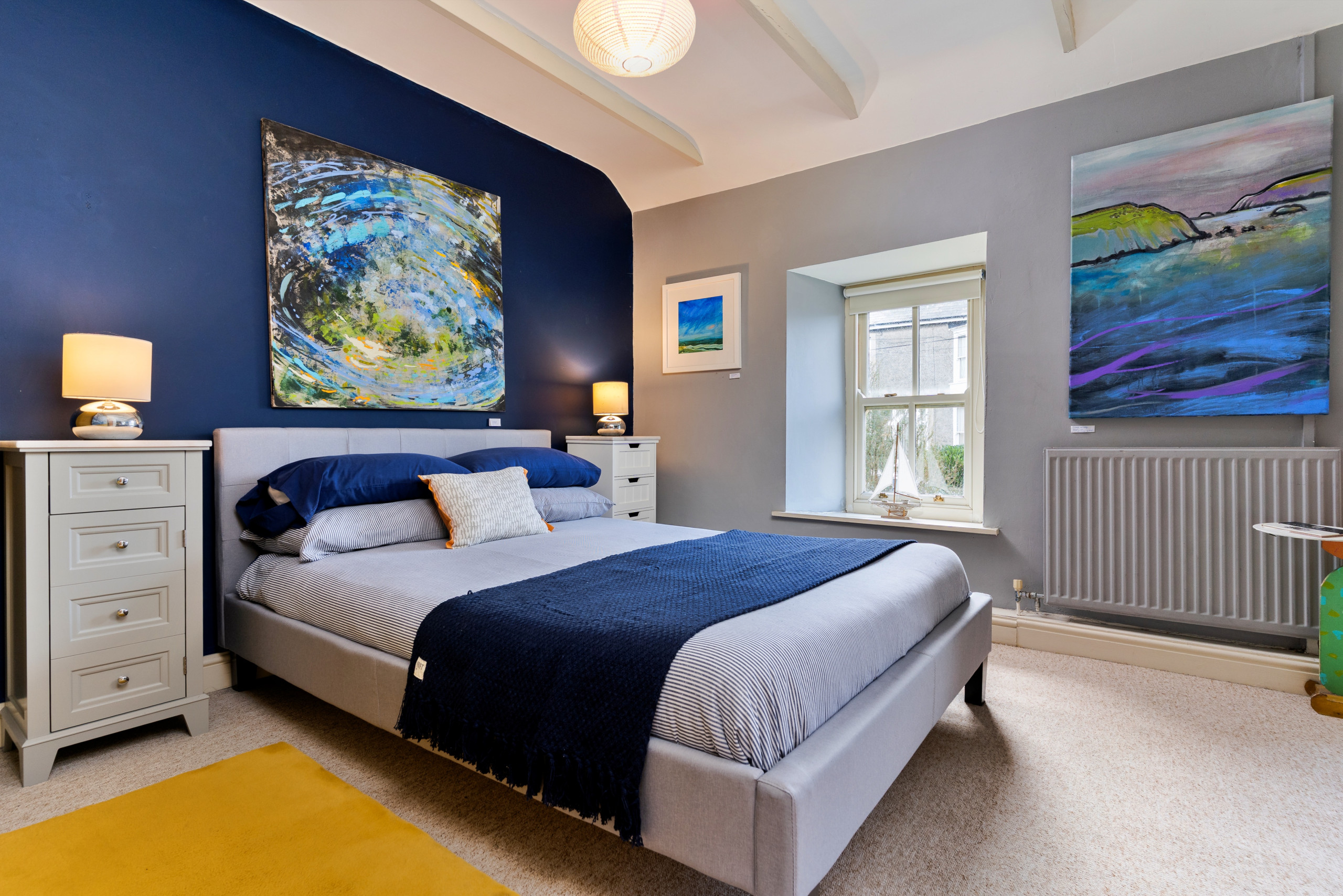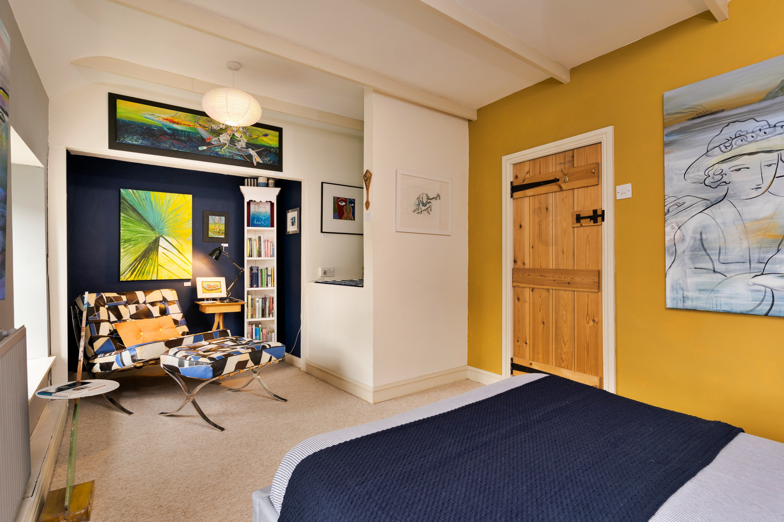 Wallis Cottage is more than a place to stay — it’s a living art gallery and a creative retreat by the sea. Nestled in the heart of historic Fishguard, this lovingly restored late-1700s cottage blends centuries of character with mid-century modern style, comfort, and colour.