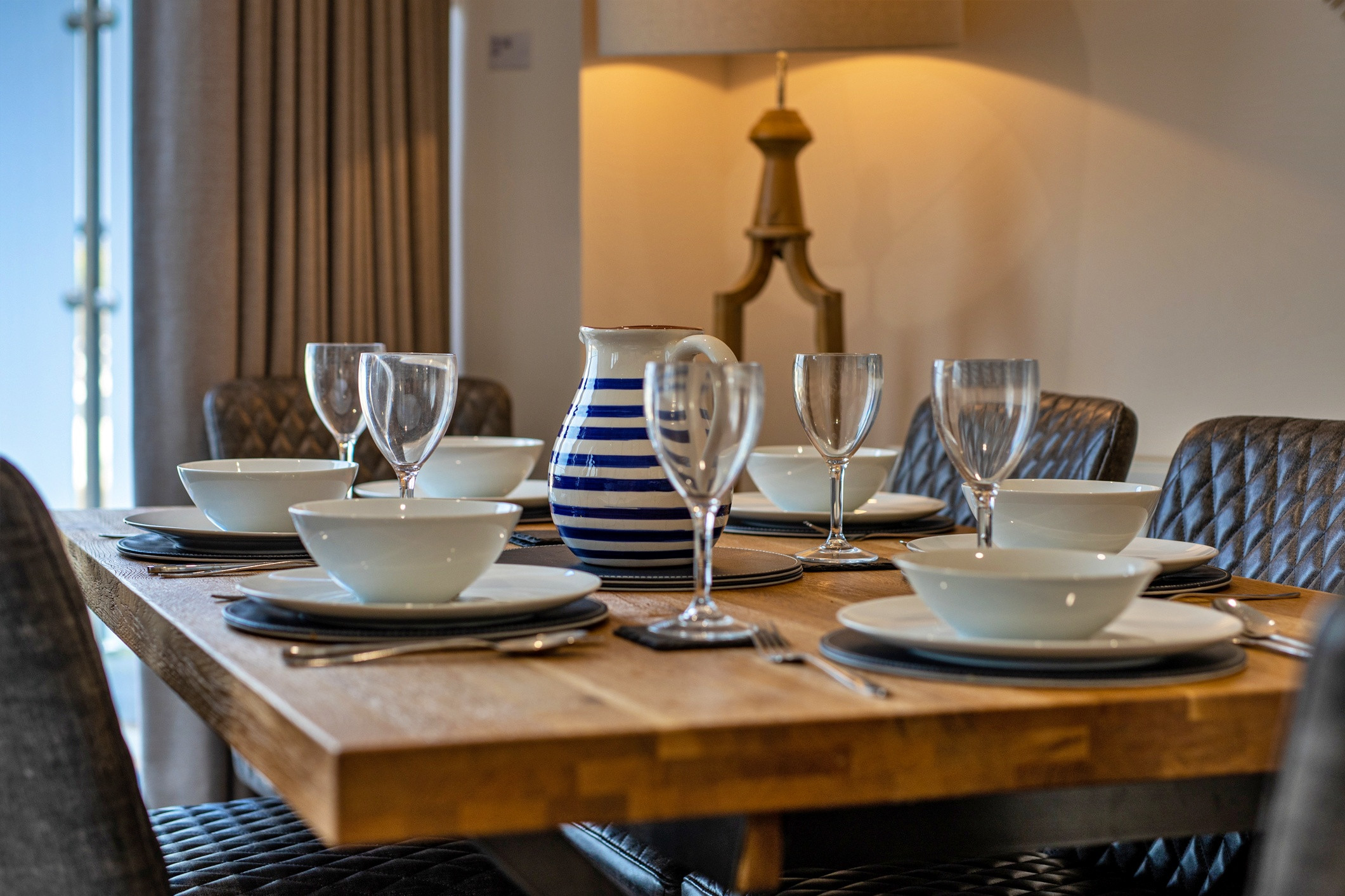 Inside, No. 1 Sand Banks combines comfort and practicality with modern coastal style. The well-equipped kitchen includes a refrigerator, freezer, oven, microwave, toaster, kettle and all necessary utensils, making self-catering effortless. The living spaces open out to a balcony and garden, where you can relax with a glass of wine and take in spectacular sunsets over the bay. With three bathrooms, central heating, Wi-Fi, a washing machine and parking for up to three vehicles on the driveway, the house is well suited for longer stays and year-round holidays.