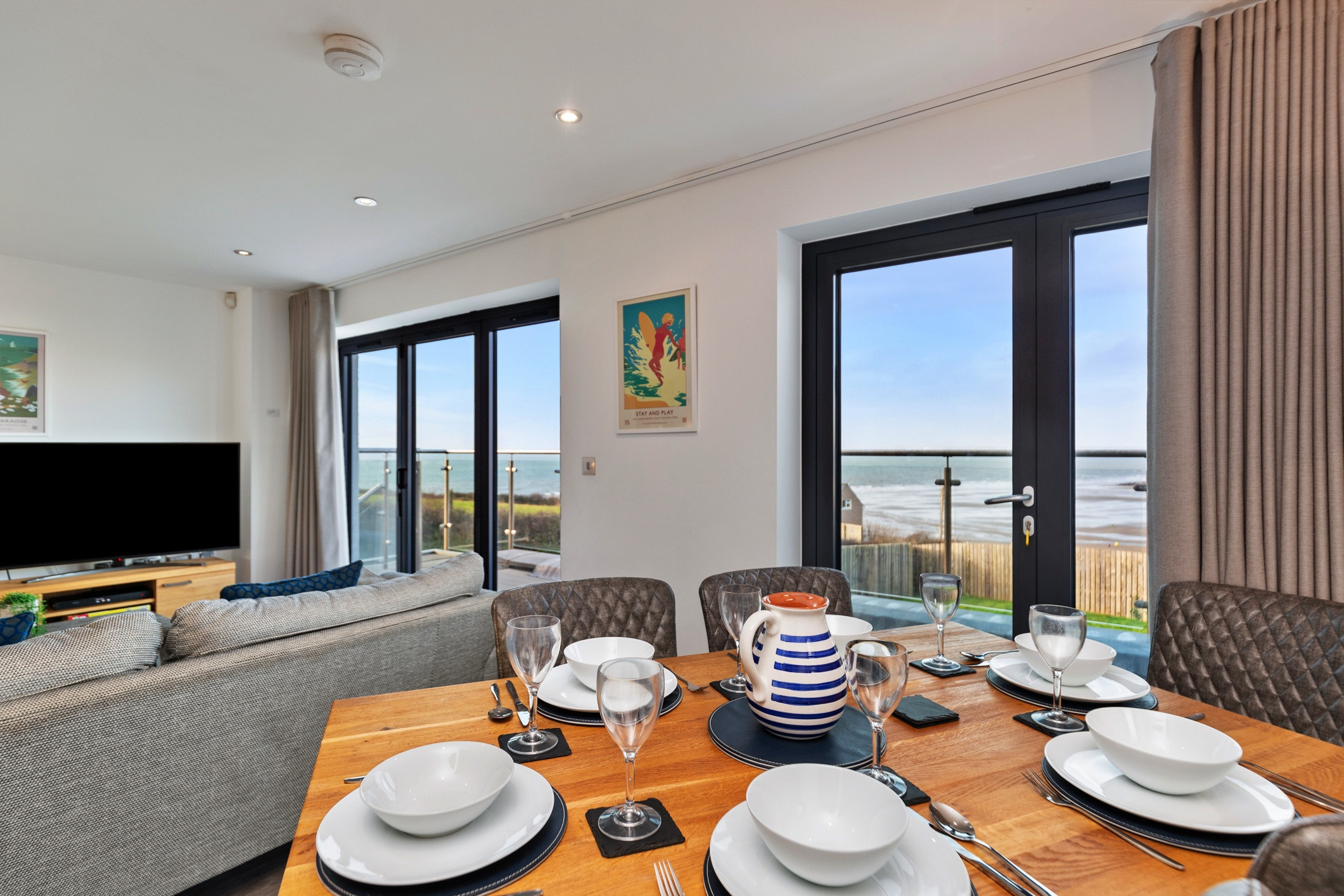 No. 1 Sand Banks is a stunning coastal retreat perfectly positioned to make the most of Broad Haven’s breathtaking westerly views across St Brides Bay. This beautifully presented four-bedroom holiday home sleeps up to eight guests and offers a stylish, flexible open-plan layout that’s ideal for families or groups of friends seeking a memorable seaside escape in the heart of the Pembrokeshire Coast National Park.